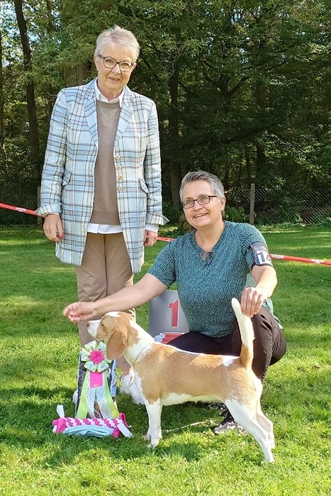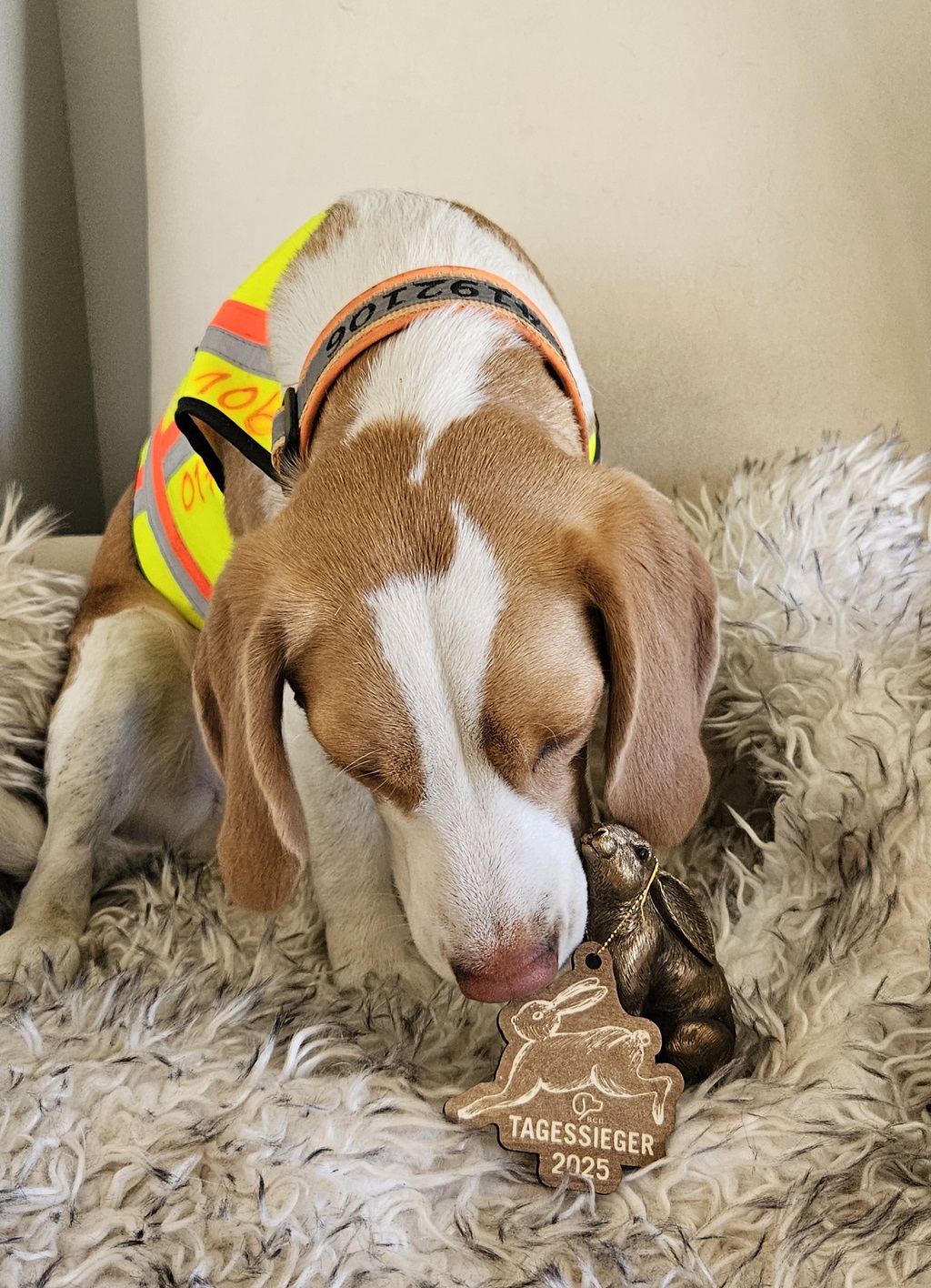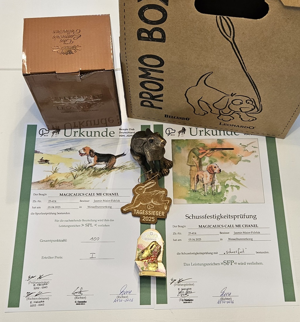 Mittlerweile hat sie sich schon auf einigen Ausstellungen präsentiert (s.u.) und am 5.4.2025 hat sie in Wesselburenerkoog die Schussfestigkeits-und Spurlautprüfung mit Bravour und dem Tagessieg bestanden. Ich bin superstolz auf meine kleines verrücktes Mädchen und bin gespannt, wie es weitergeht.