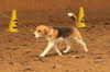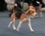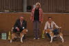 Rüde im korr Format, Kopf mit etwas schmalem Fang und ausr langem Behang, korr Hals- Ober- u. Unterlinie, gute Brustausformung, korr. Vorbrust, korr gepolsterte Pfoten, raumgreifender Bewegungsablauf m gutem Schub. V3