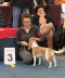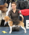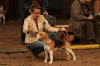 Tricolour of pleasing size, shows in good condition, compact, good feet, rather plain in head with high set ears + could have more angulation ....? (kann ich leider nicht lesen) sg3